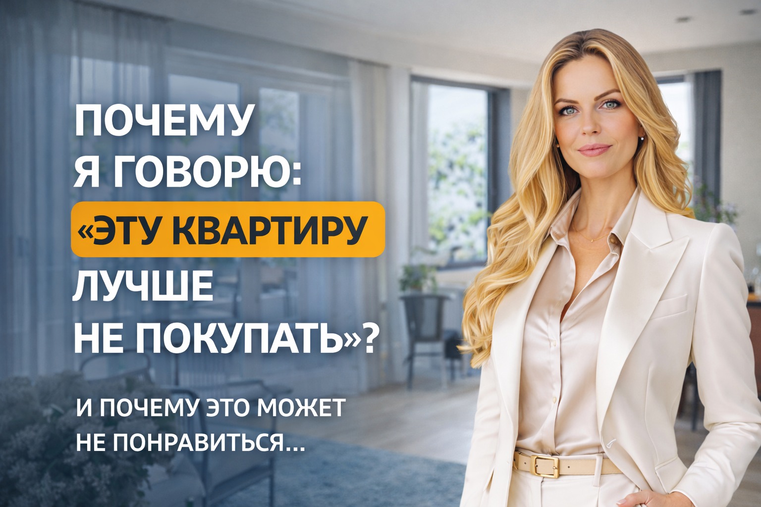 В работе с недвижимостью есть момент, который удивляет почти всех новых клиентов. Иногда я прямо говорю: эту квартиру лучше не покупать. Не потому что объект плохой и не потому что «мне не нравится квартира», а потому что покупка недвижимости — это не эмоция в моменте, а решение с последствиями, с которыми человеку потом жить годами.